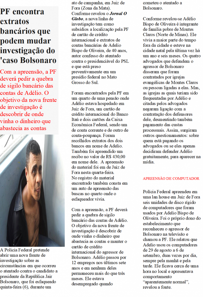 Home Política PF encontra extratos bancário em quarto de Adelio By Pedro Simão 8 anos Ago Share on FacebookShare on Twitter Categories: Política Related Content By Pedro Simão 1 de abril de 2026 By Pedro Simão 31 de março de 2026 By Pedro Simão 27 de março de 2026 By Pedro Simão 27 de março de 2026 By Pedro Simão 14 de março de 2026