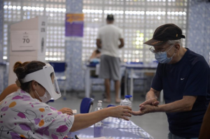Eleitores foram orientados a usar álcool gel antes e depois da votação